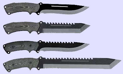 Некоторые модели таких ножей даже выполняют не из стали, а из титановых сплавов. Причина такого специфического подхода -уменьшение веса ножа и повышенная стойкость титана к агрессивному воздействию внешней среды; минус - меньшая твердость и стойкость режущей кромки.