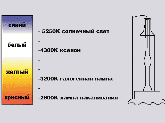 и солями металлов под большим давлением. Ксеноновая лампа имеет цветовую температуру около 4.300 градусов по Кельвину
